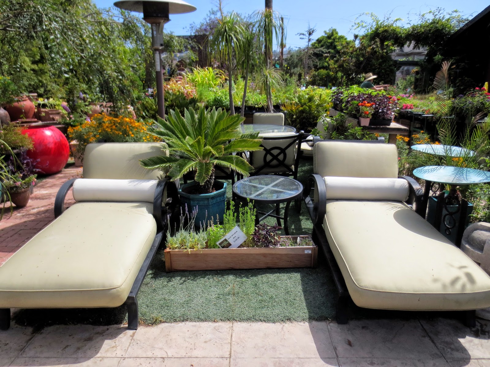 In the back of an adjacent parking lot for the Surf & Sand Resort, we found bedding plants, garden furniture and more garden sculptures.