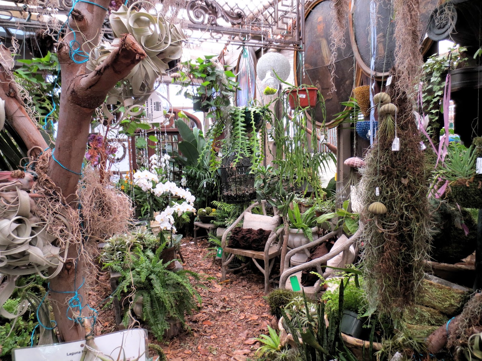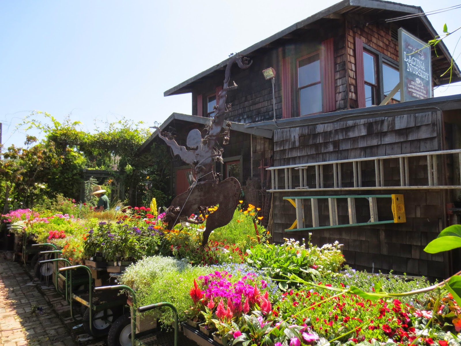 Laguna Nursery in the heart of Laguna Beach, an artist community located in Orange County. This nursery is less than 10 miles south of Roger's Garden but neither my friend nor I had ever been there. We were both surprised by what we found. It's a difficult place to characterize. The words eccentric, eclectic, funky, imaginative, and even claustrophobic come to mind. Perhaps you can provide your own description upon viewing the photos I took, although I don't know if these even begin to capture the feel of the place.