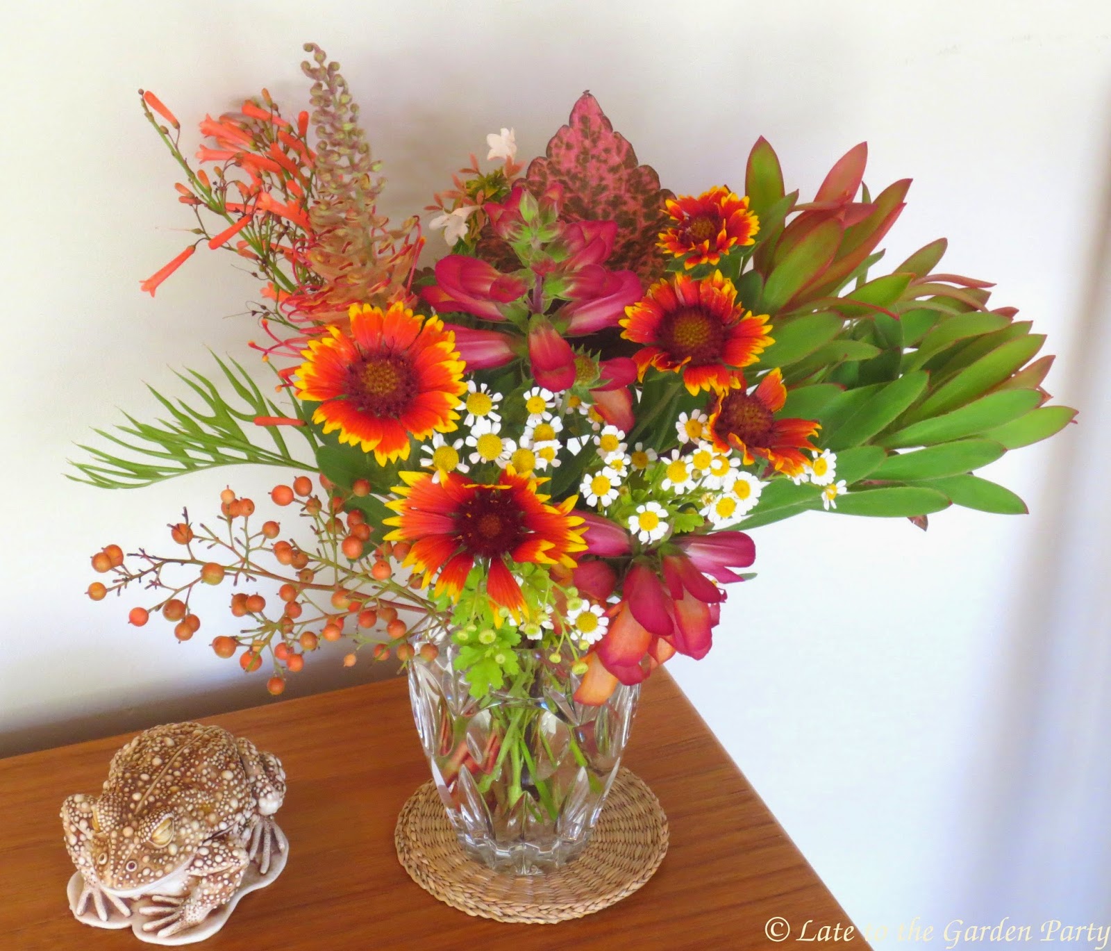 Rambling in the Garden. One of my 'Buttercream' rose shrubs has been working hard to produce blooms since the weather cooled the weekend before last. But then temperatures heated up again before cooling once more this past weekend and the roses were left looking rather sad. So I went hunting for a substitute and ended up with a little of this and a little of that, creating a cheerful bouquet better suited to the start of autumn than the pale yellow roses.