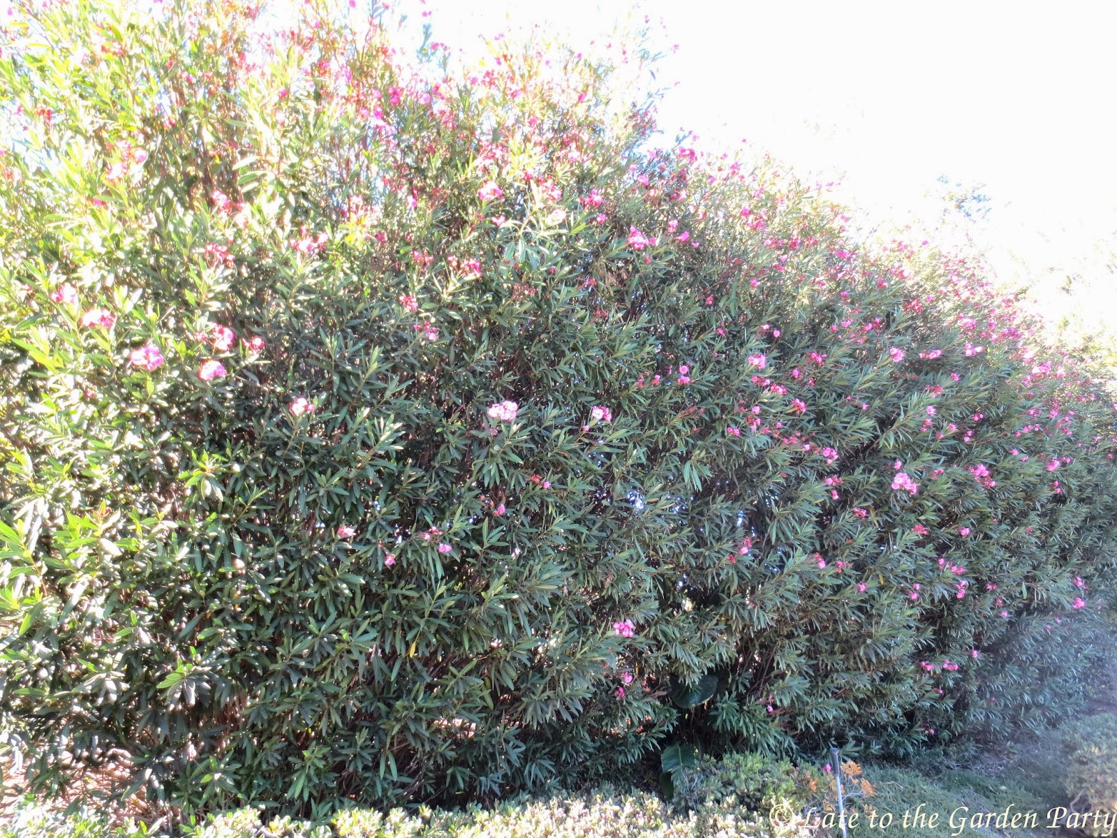 | View of the same oleanders from our neighbor's driveway |