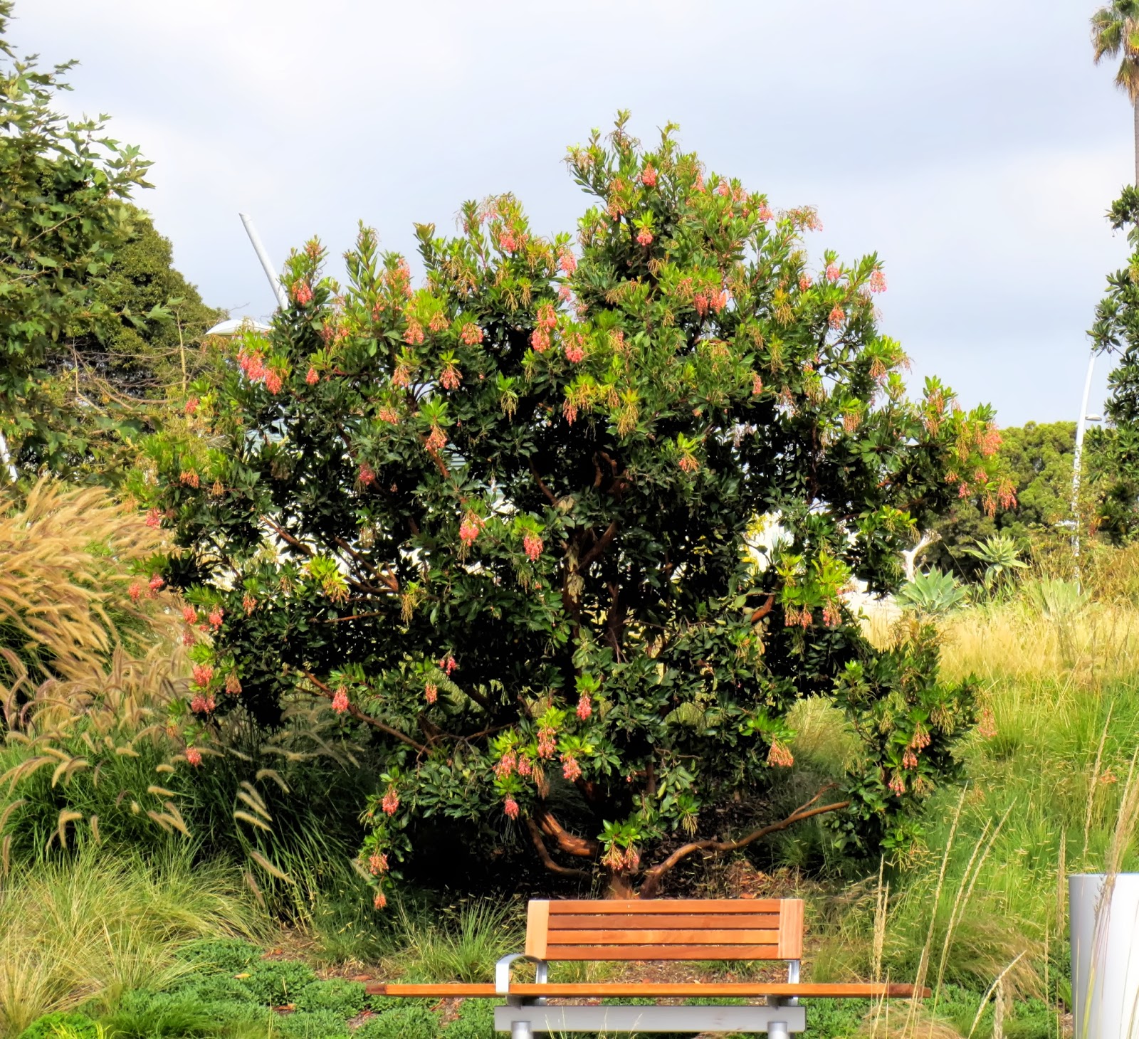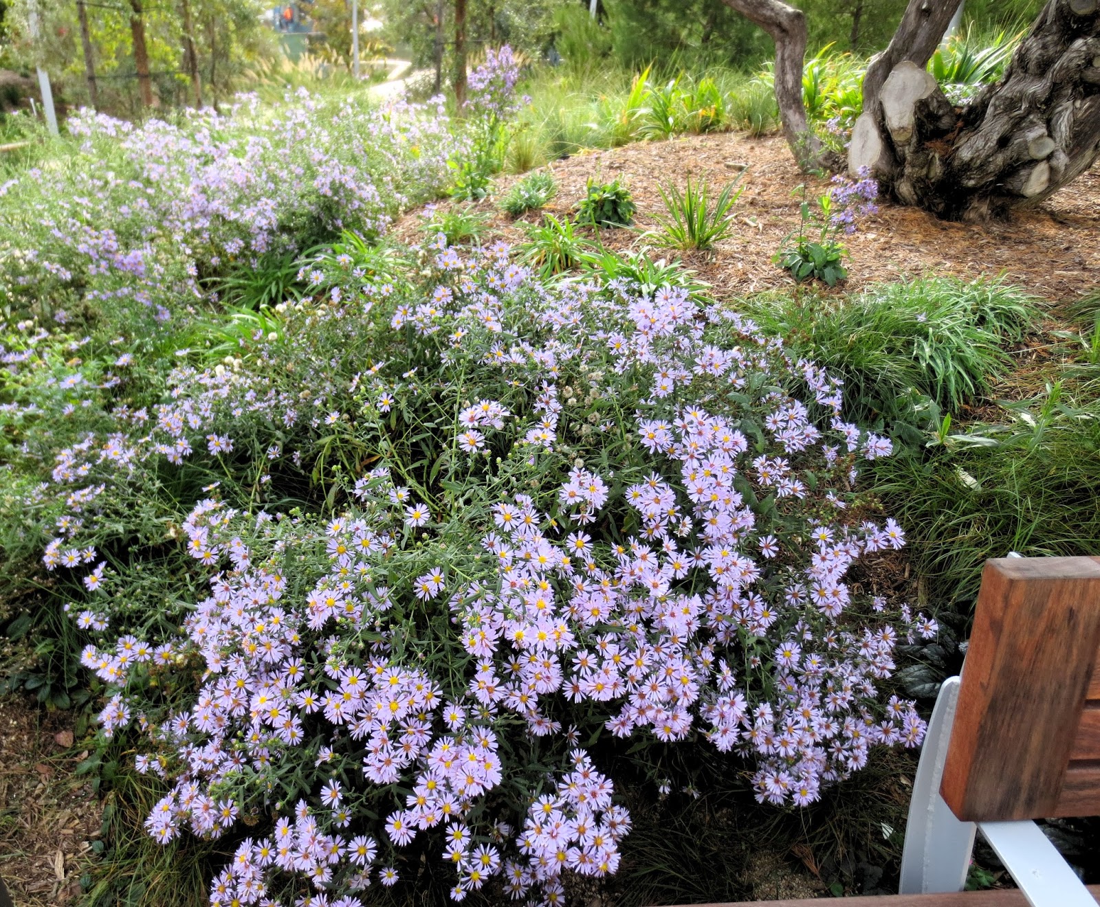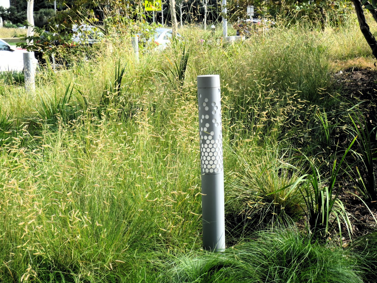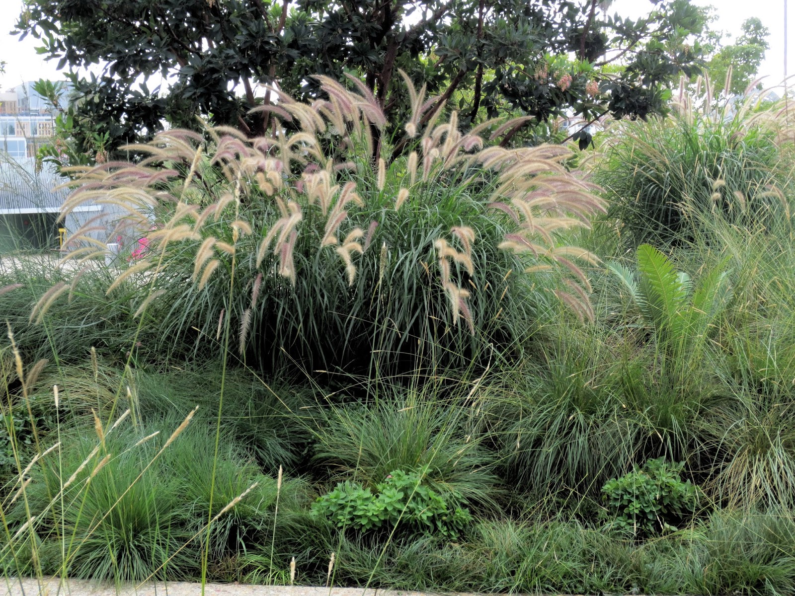 Wide paths cut through the space, which is heavily planted with climate-appropriate grasses, succulents, trees and other plants.
