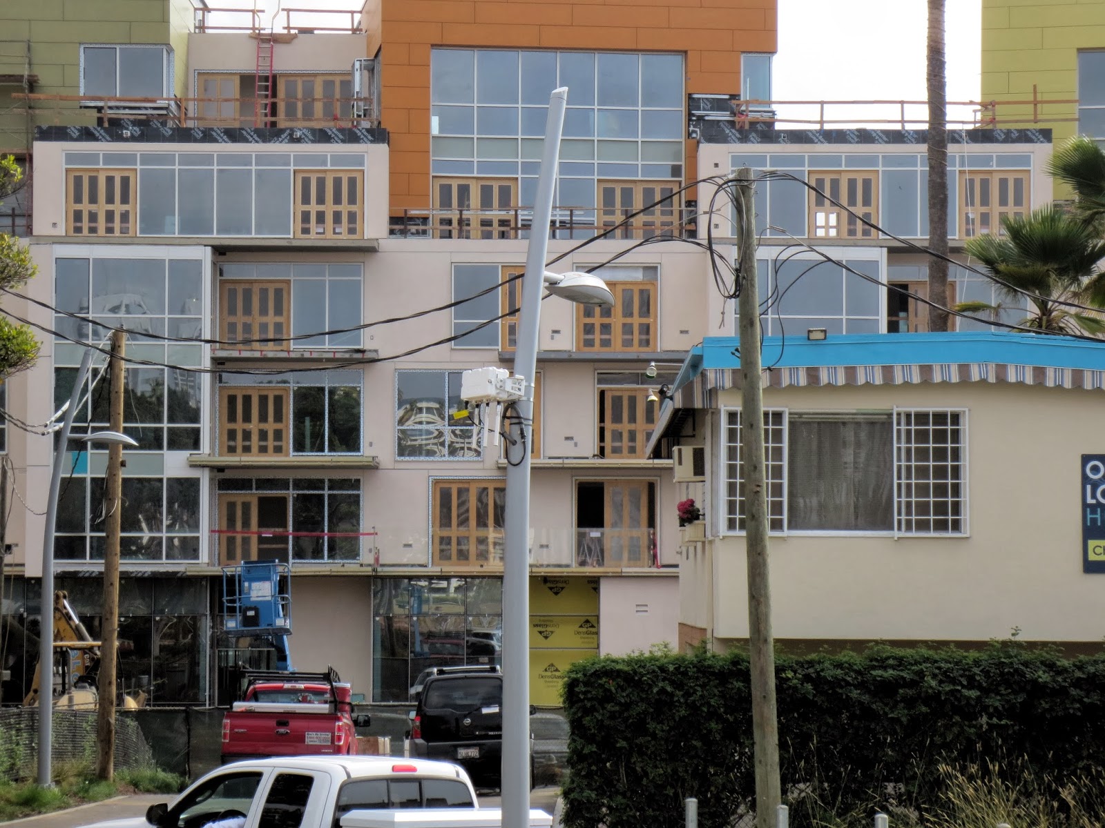 A construction project is underway on the south side of the park. It looks suspiciously like a large condo complex will soon occupy the space on this end of the park. With views of the ocean, pier and the new park, as well as an upscale mall close by, I expect that's going to be very expensive housing, even by southern California standards.
