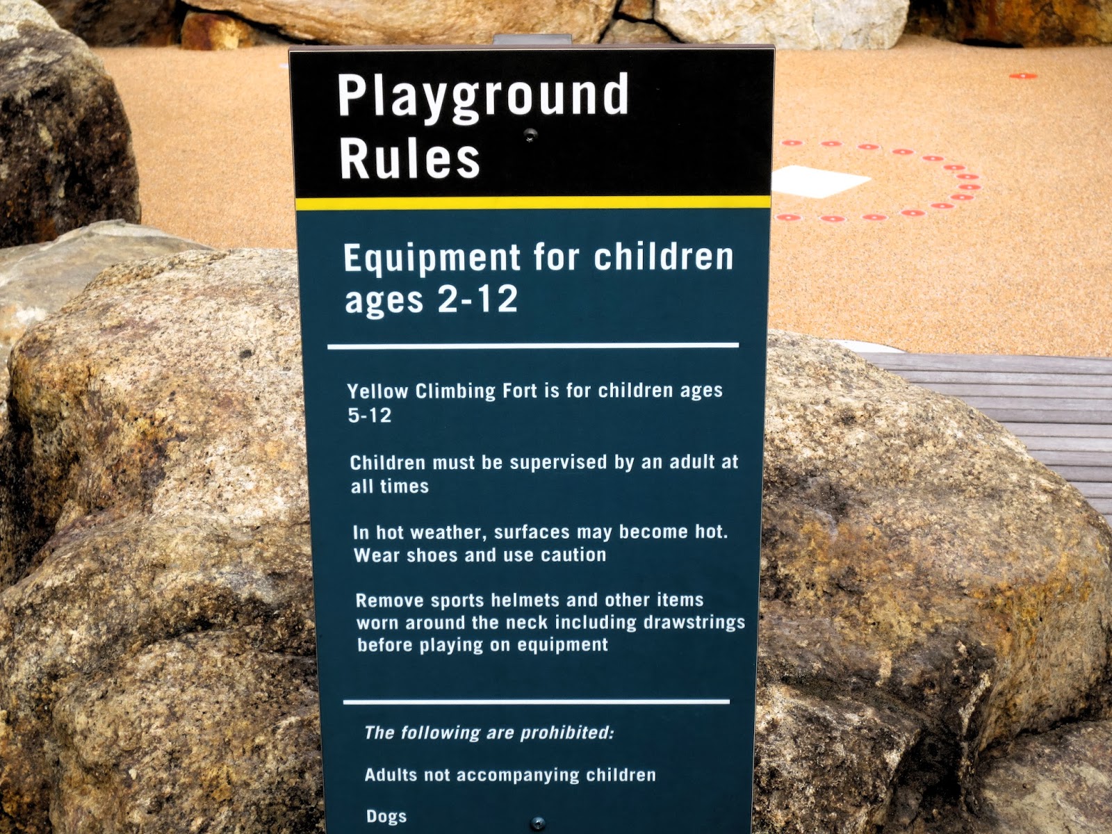 The sign, with its list of prohibited activities, has received criticism but I have to say the park was remarkably well cared for. Paths, as well as picnic areas, were completely clear of debris. We saw 3 or 4 gardeners at work and a woman in park ranger gear on patrol.