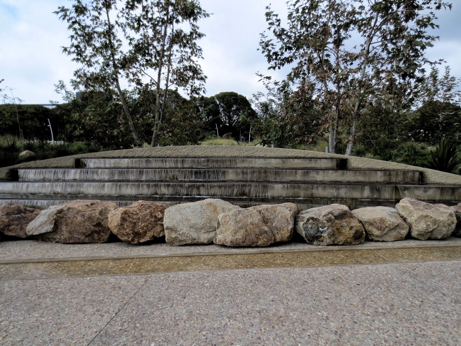 | Stairs beyond the fountain area lead up to Observation Hill |