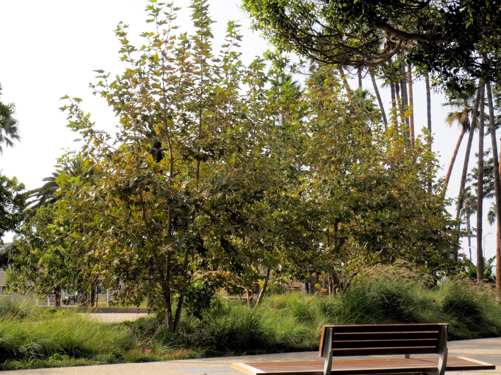 Ficus Rubiginosa) referred to as the "Three Amigos." Morty had been part of the old Rand Corporation campus but the other 3 fig trees were moved 550 feet from the intersection of Main Street and Olympic to join Morty in the picnic area (as described