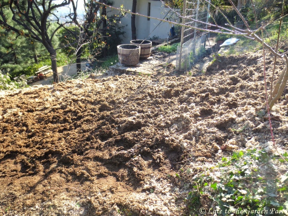 | The tree service increased their price, in part, due to our request to also grind out the small stumps higher on the slope, off-shoots of the original Yucca (circled area) |