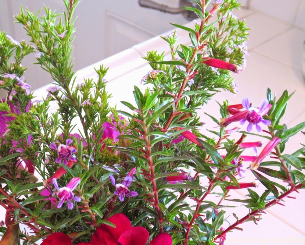 | Close-up of the cigar-shaped flowers of the Cuphea (loved by hummingbirds and bees!) |